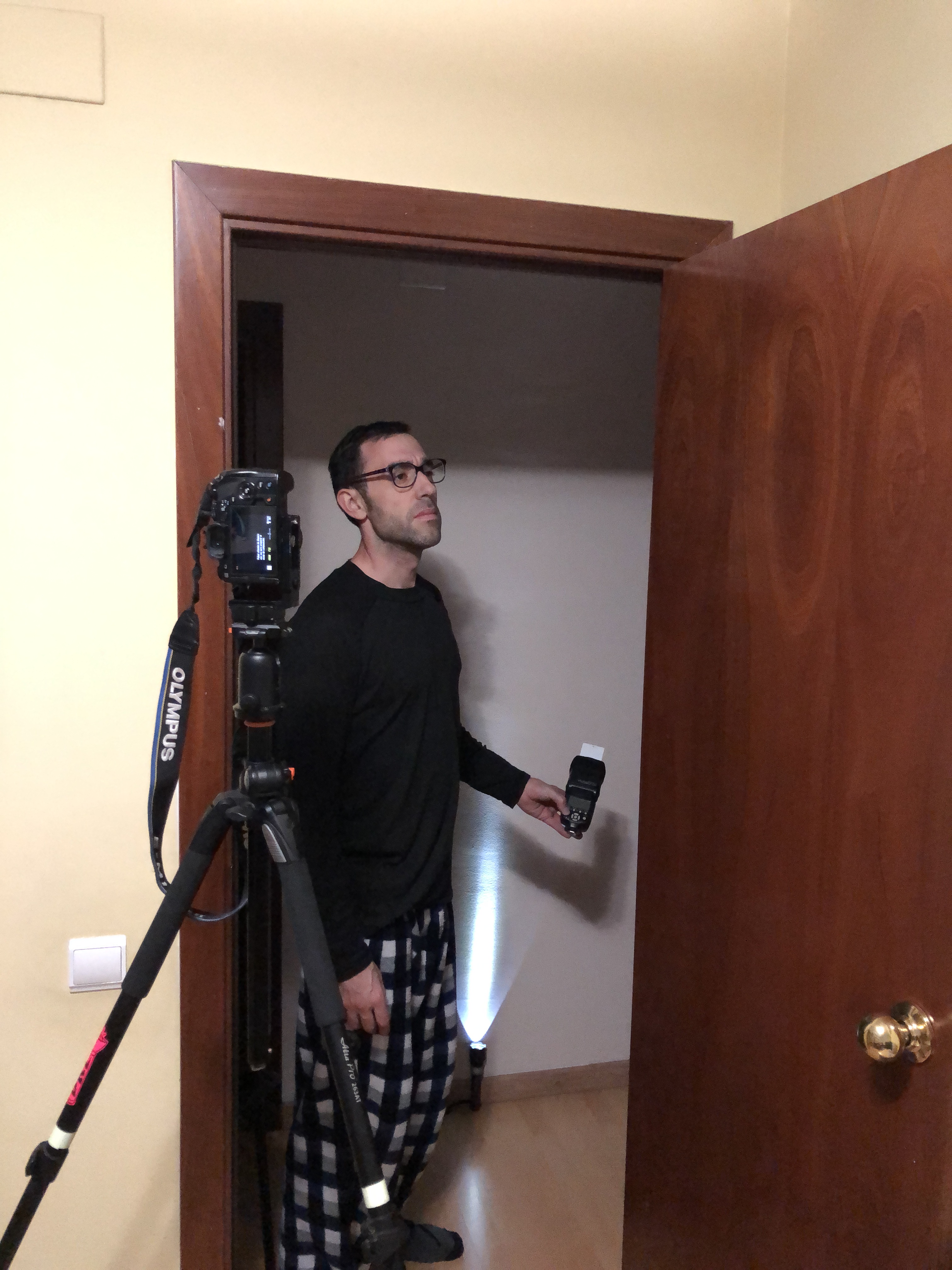 To do this he initially burnt out the wall behind him using a flash and also using the help of a flashlight to correct any areas which were a little underexposed.